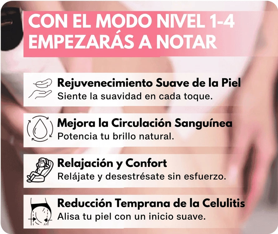 Este pequeño dispositivo ha sido un antes y un después para mis noches de spa en casa. La succión ajustable y mi gel conductor hace que se molde perfectamente mis piernas. He notado una reducción drástica y una mejora en la elasticidad de mi piel.